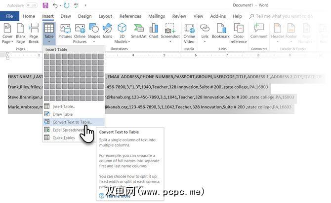 您可以指定Microsoft Word如何将数据分为行和列。段落,制表符,逗号或任何其他定界字符。这样,您可以轻松地从CSV文件或纯TXT文件中导入非表格数据,并将它们转换为格式化的表格。