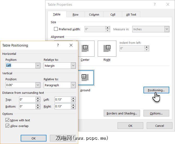 根据表格周围的文字放置表格,从而获得美观的外观。通过拖动手柄将文本环绕表格。文字换行会自动从无更改为周围。在表格定位对话框中,可以为表格的每一面设置与周围文字的距离。