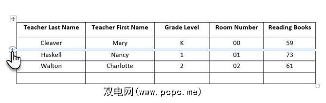 在Word中创建表的另一种快速方法是插入控件特征。您可以一键创建新的列或行。将鼠标悬停在桌子上。表格正好出现在表格外部两个现有列或行之间。单击它,然后在该位置插入新的列或行。
