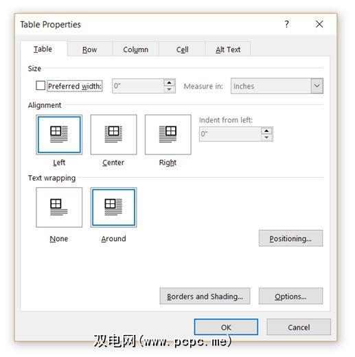 右键单击表,然后从上下文菜单中选择表属性。 “表属性"对话框用于精确控制数据及其显示。控制表格的大小,对齐方式和缩进。