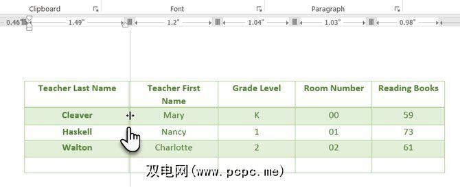 将鼠标悬停在边框上。当出现双箭头指针时,单击边框并按住ALT键。 Microsoft Word在标尺上显示特定的尺寸。移动行和列以适合您的测量。