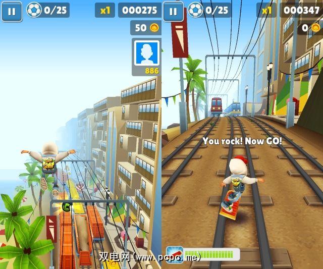 类似于Temple Temple的执行过程,Subway Surfers的攻击对手并不那么凶悍–这次,它是一名保安,不愿涂鸦。这样一来,您就可以穿越无尽的火车场,铁轨和偶尔的腹地,开始有趣的逃生之旅,因为在收集硬币,字母和其他奖励物品的同时避免撞到火车,障碍物,月台墙和其他风景项目。从收集250个硬币到跳到一定数量的火车并在特定距离上奔跑不等,也都可以完成。