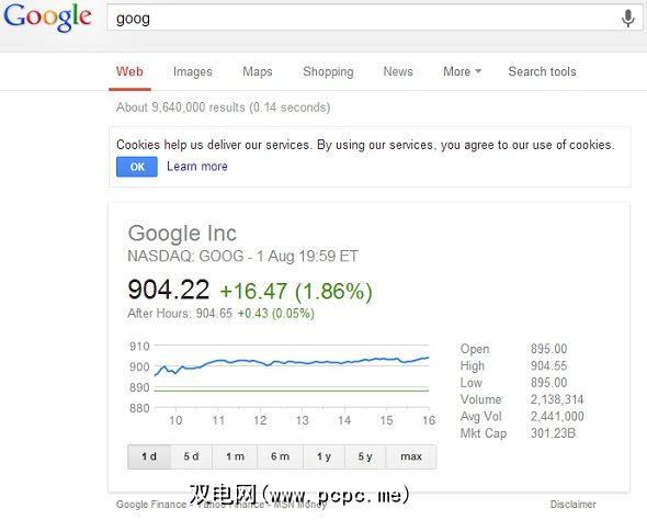 我没有足够的幸运去拥有任何公司的股票。与普遍的看法相反,这篇写作的马拉基不能保证名利双收。但是,如果我愿意冒险投资一家公司,那么很高兴知道,这个Google搜索捷径的存在使您只需像在Google中输入几个字母就可以轻松地监视这项投资。