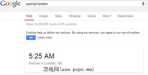 输入:“日出[位置]" 。例如:“ 伦敦日出"