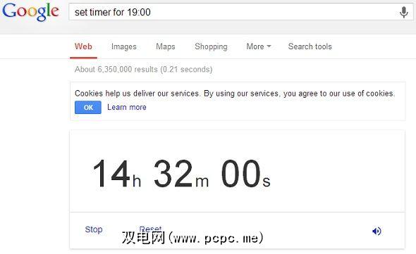 类型:“将计时器设置为[时间]" 。例如:“ 将计时器设置为19:00 "