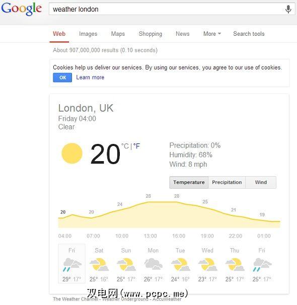作为英国人,我对天气有些着迷。生活在一个只有一天就能经历全部四个季节的国家中,这是一种痛苦。我还写了关于现有最好的天气网站的文章,其中许多书呆子。但是对于那些只需要了解家乡基本天气预报的人,此Google搜索快捷方式应提供所有必要信息。