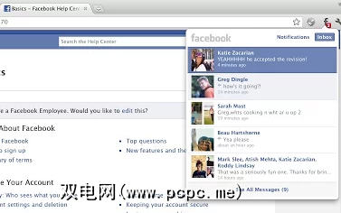如果您不想错过Facebook上的更新,则可以使用Facebook Notifications扩展将通知图标带入Chrome工具栏。当有通知或消息等待您时,它将通知您,然后单击一下便可以访问它们。