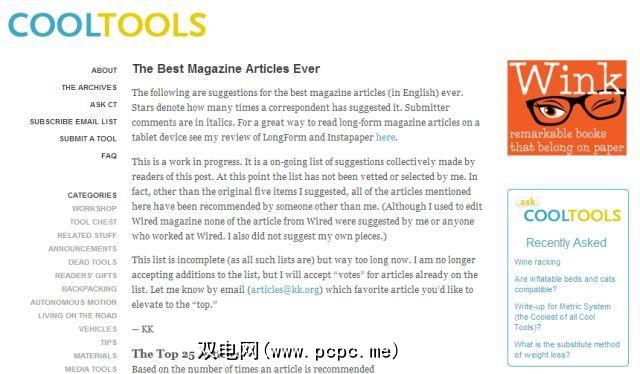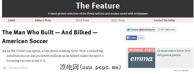 以前称为“给我一些东西来读书",此功能是Instapaper的编辑Richard Dunlop-Walters精选的最佳阅读清单,可以说是最好的后期阅读iPad的应用程序。这是一个简单的列表,只包含标题和文章的引用部分,单击可将您带入文章。它已经存在了几年,因此,存档中有一些精彩的文章,如果您还没有阅读过的话,应该仔细阅读。遵循此条款的好处之一是Dunlop-Walters每天仅添加2-4篇文章,因此,如果您关注该网站,您的阅读列表也不会肿!