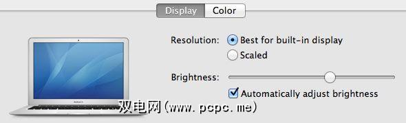 要关闭自动屏幕亮度调整,请打开系统偏好设置并转到显示首选项窗格。选择您的计算机屏幕,然后在 Display 标签下,切换亮度滑块下方的框。