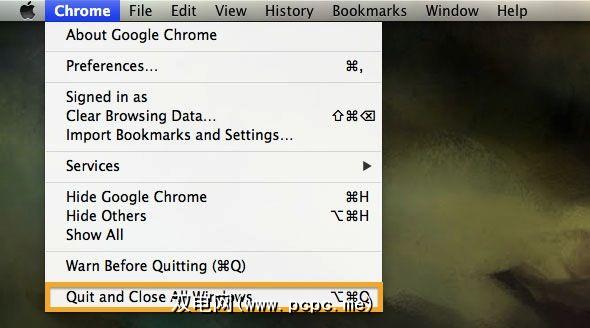 您可以通过不同的方式退出应用程序来规避该过程。打开应用程序的下拉菜单,并按住Option键。最下面的选项将从标准退出更改为“ 退出并关闭所有窗口"。