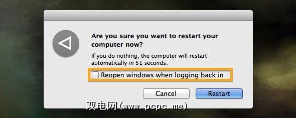 Mac OS X的最新迭代具有在重新启动计算机后(或崩溃后)恢复系统状态的功能。这包括打开相同的文件和应用程序。与上述类似,如果重新启动计算机以清理过度填充的桌面并释放一些内存,这可能会很烦人。