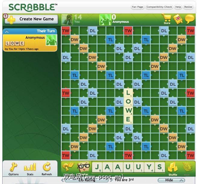 Lexulous(以前称为Scrabulous)在几年前受到孩之宝和美泰公司的诉讼打击时声名狼藉。自那以来争议一直平静下来,它仍然是Facebook上最受欢迎的游戏之一。使用电子邮件或Facebook帐户注册,然后选择一个句柄。为您的第一个单词之战选择一个房间。