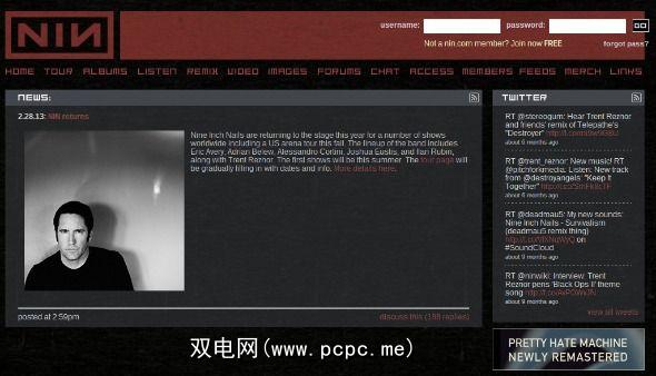NIN由特伦特·雷兹诺(Trent Reznor)和他沿途接载的任何人。雷兹诺(Reznor)是乐队背后的推动力,乐队跨越各种类型,但通常被视为工业摇滚乐队。该网站干净高效,但包含大量内容,包括免费下载以及跨越乐队历史的50,000多张照片和视频。