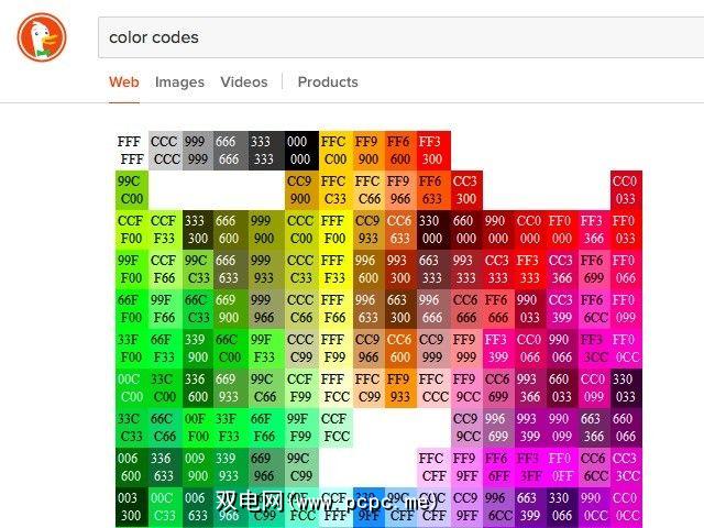 一个接一个地查找颜色代码是没有意思的(嘿,押韵)。对于256种RGB颜色,您根本不需要遵循一次性的颜色代码。在DuckDuckGo中搜索颜色代码,您会得到一个图表,其中所有十六进制颜色代码与相应的颜色相匹配,以便于识别。简而言之,您将获得以下信息: