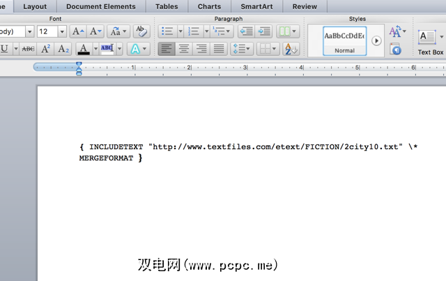 如果要在Microsoft Word文档中保留网页的更新副本,也可以这样做!假设我要在文档中包含两个城市的故事的在线文本文件。我将使用相同的INCLUDETEXT字段,但是将使用URL: