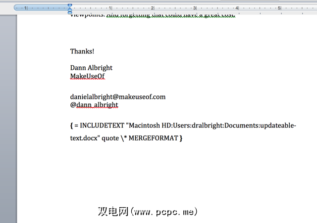 INCLUDETEXT "Macintosh HD:Users:dralbright:Documents:updateable-text.docx" signoff
