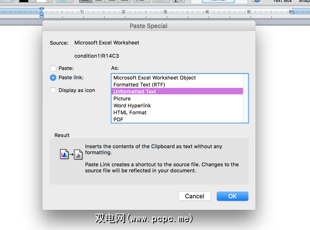,而不是选择 Microsoft Excel工作表对象,而是选择了未格式化的文本;这就是为什么数字与Microsoft Word文档的其余部分采用相同的格式的原因。它仍然以相同的方式进行更新,但是您不必尝试将文本框放在正确的位置。