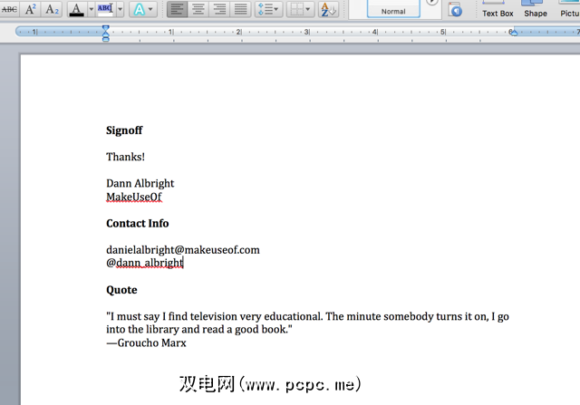 如果您需要在文件上键入相同的内容通常,您可以将其放在Microsoft Word文档中,然后直接从另一个文档中引用它,从而节省时间。