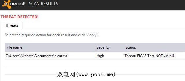 您的病毒扫描程序应将此文件选为病毒,并进行相应处理。如果可以,则表明防病毒程序正在按预期运行。当然,这不能保证您免受所有病毒的侵害。
