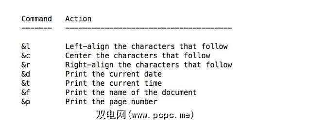 此记事本功能的酷之处在于,使用一些特殊命令,您可以插入文件名,时间戳记以及页眉/页脚中的页码,甚至将其内容左,右或居中对齐。下面是您可以使用的命令的快照:
