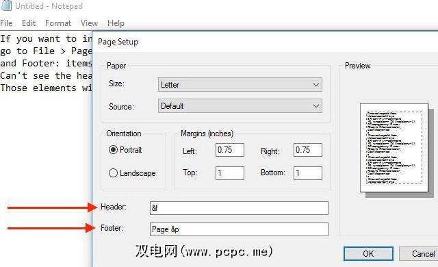 由于无法从页面设置对话框中保存页眉/页脚内容,因此必须手动添加每次打印文件时。另外,您不能像在Microsoft Word和其他文字处理器中那样在记事本中设置不同的页眉和页脚。