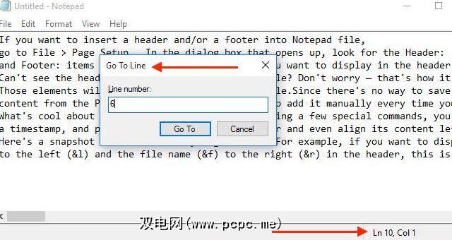 要跳至特定行,按 CTRL + G 弹出转到行对话框,输入您要跳转到的行号,然后按 Enter 。即使您没有显示行数也可以使用,因为记事本的编号系统始终处于活动状态。
