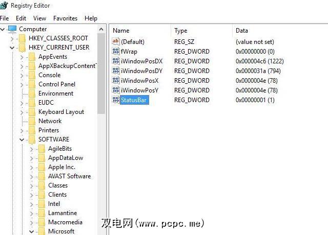 准备好继续吗?大!在Windows搜索中输入 regedit ,然后按 Enter 以打开注册表编辑器。接下来,使用侧边栏导航查找以下键: HKEY_CURRENT_USER \ Software \ Microsoft \ Notepad 。在边栏中选择它后,双击右侧面板中的 StatusBar 。做完了吗现在在弹出的对话框中,将 DWORD 的值从0更改为 1 。