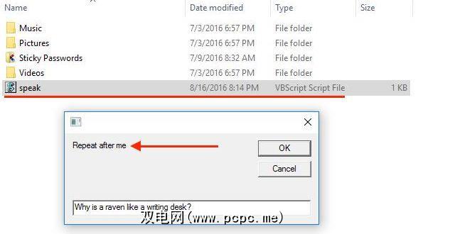 使用 File> Save As 命令保存扩展名为.vbs的文件。现在,当您打开保存的文件时,将出现一个带有空白文本字段的对话框。输入一些内容让您的计算机朗读,然后按确定。您还需要查看其他五种方法来使Windows计算机能够读取您的内容。