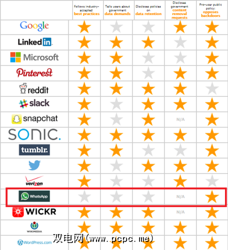 EFF在一份声明中说:“ [[WhatsApp]没有采用我们在本报告中确定的最佳实践。