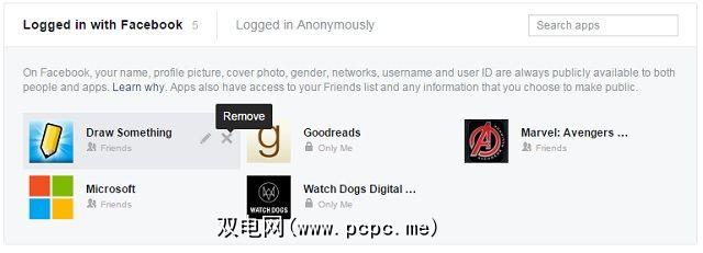您可以更改应用的可见性,就像活动日志中的帖子一样,甚至可以完全删除应用权限。您会在“设置">“应用"中找到它们。
