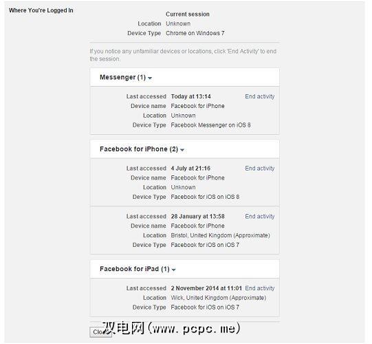 Facebook知道您登录的位置以及所使用的设备。更糟糕的是,如果您不理会帐户,其他人可能会偷窥。幸运的是,您可以轻松管理登录位置。打开设置>安全>您登录的位置。 您不认识的一个人?只需单击结束活动,它将使您退出该设备。