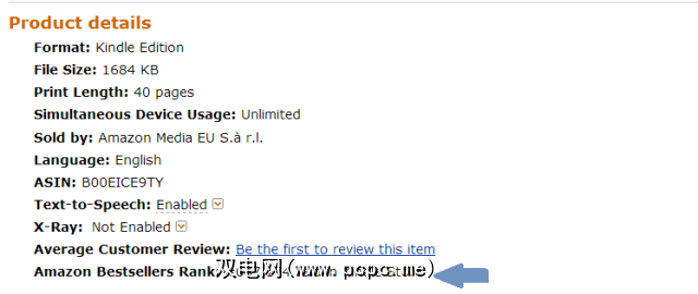 在所有图书类别中(包括Kindle支付的和免费书籍)以及Amazon上的大多数产品类别,如果您将页面向下滚动到“产品详细信息"部分,则会看到其显示“ Amazon畅销书排名"。该数字据称是按小时计算的(如Amazon所述),并且与该类别中其他产品的近期销售数量(同时也考虑了历史销售数据)相关联。