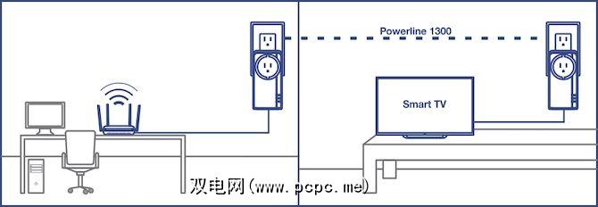 电力线以太网设备无法完成路由器的工作,例如分配IP。这意味着,为了使电力线设备有用,需要将一个电力线适配器连接到路由器。