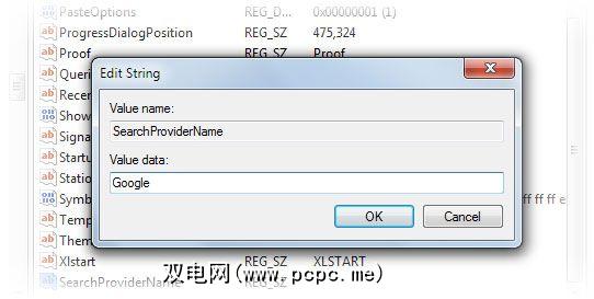 双击 SearchProviderName 。在值数据框中输入 Google 。