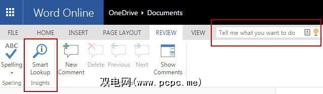 尝试了解。可以在Word Online中的编辑视图(视图>编辑视图)中找到Office Insights。