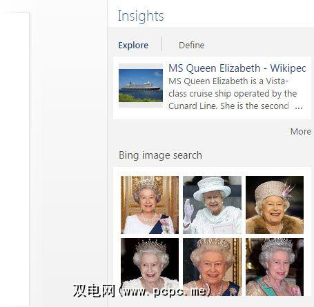 右键单击您想了解更多的单词或单词组。从菜单中选择见解(或查看标签>见解)。