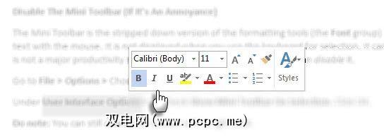 “迷你工具栏"是功能区中可用的格式化工具的精简版本(字体组)。当您用鼠标选择文本时,迷你工具栏将在Word,Excel和PowerPoint中显示。使用键盘选择时不会显示。它可能是方便的快捷方式,也可能是令人讨厌的烦恼。