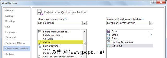 转到转到文件>选项>快速访问工具栏。选择所有命令,然后在快速访问工具栏中单击计算命令和添加。单击“确定"。
