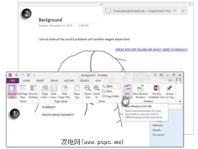 打开OneNote和要显示的页面。点击视图>新窗口,打开镜像页面。