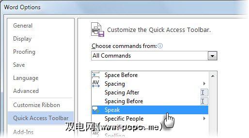 将“语音"命令添加到快速访问工具栏中,以快速访问。