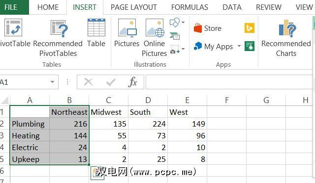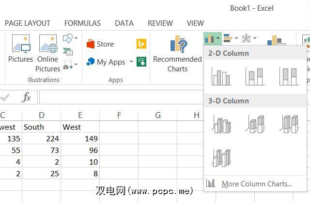 在这种情况下,我选择细分了美国东北地区房客的问题数量。选择数据后,只需点击插入,您就会在菜单中看到各种图表类型。在这种情况下,您可以使用2-D或3-D列。