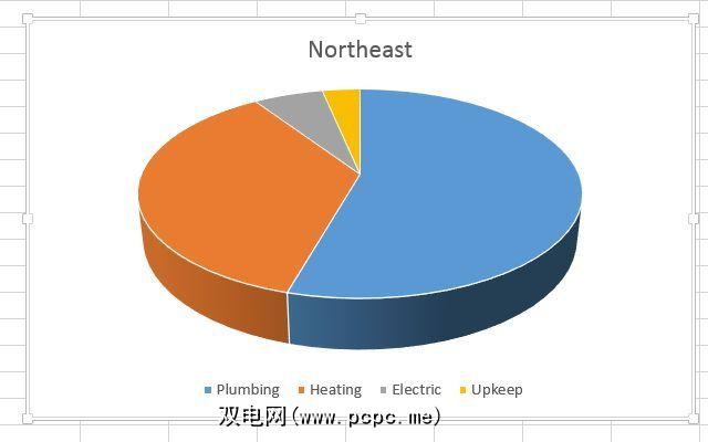 例如,大学可以使用饼图显示其学生人口的种族统计数据的细分。使用上面的数据,您可以使用饼图通过维修问题来细分东北地区的租户问题。