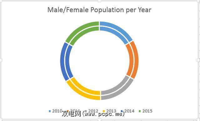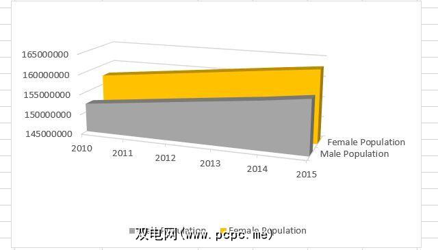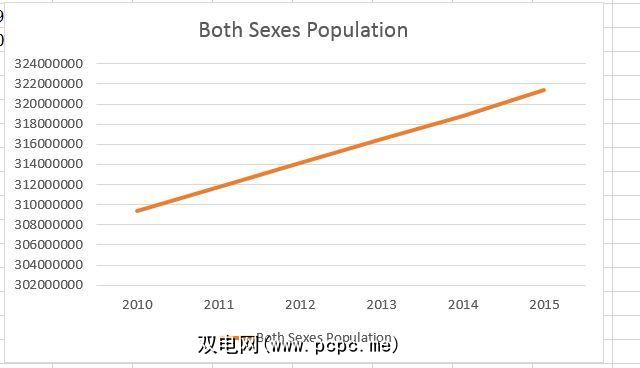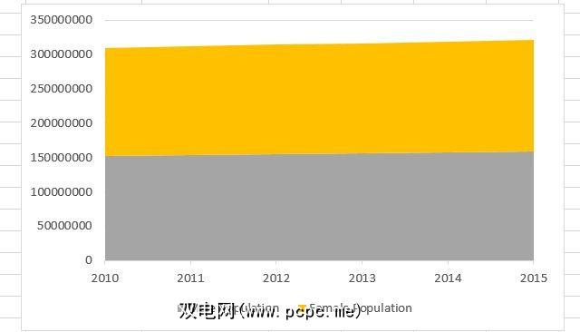 使用上面的人口数据,您可以比较2010年至2015年男性和女性人口增长情况。