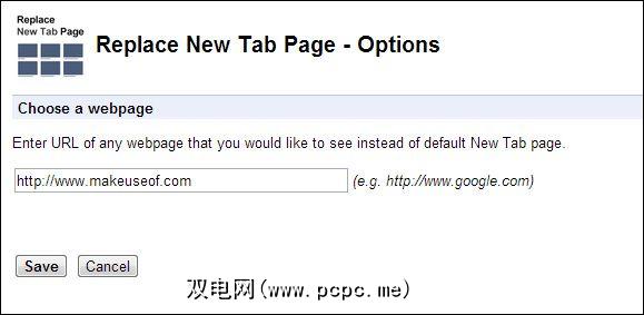 替换新标签页可帮助您更改打开的任何新标签页的默认行为在Chrome中。与Chrome设置不同,Chrome设置允许您在启动时打开一组页面,而该扩展程序会打开您在Chrome中打开新标签页时指定的任何网页或Web应用程序(例如我们上面提到的网页或Web应用程序)。安装扩展程序后,只需使用新选项卡设置要打开的网站的URL。