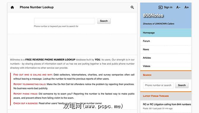 3。它被称为800Notes,它确实有一个小型论坛,您可以在其中询问有关欺诈者和robocall的问题,并获得有关如何处理它们的反馈。白页