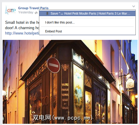 每当您看到朋友或页面上有您想回忆的旅行想法的帖子时,请使用该帖子右上方的菜单保存该帖子。稍后,您可以在新闻源和活动中的链接中看到这些保存的项目,这意味着您可以轻松地在搜索结果中找到它们。或者,如果您愿意,请查看此浏览器扩展程序以保存Facebook帖子。
