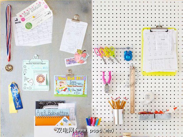 完成后,您将获得一个壁挂式板,该板分为金属部分(主要用于磁体) )和衣板一半(用于悬挂用品)。对于任何创意者的家庭办公室都很有用。