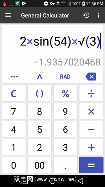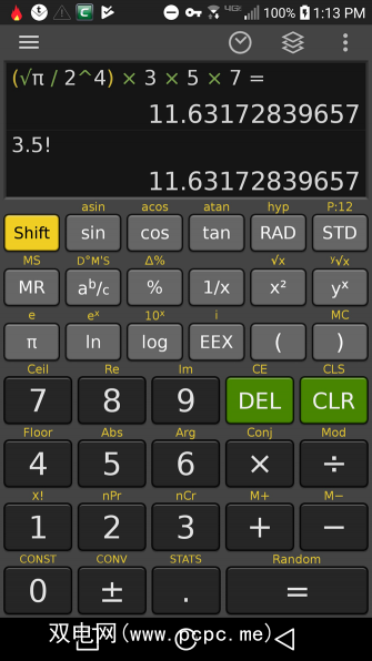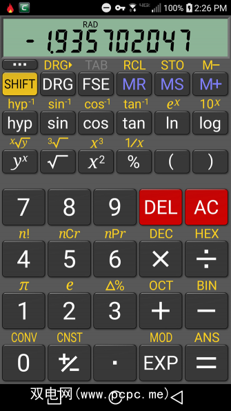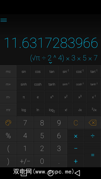 另一个不错的科学计算器是流行的RealCalc。它的设计看起来像您在学校中使用的传统手持式科学计算器。