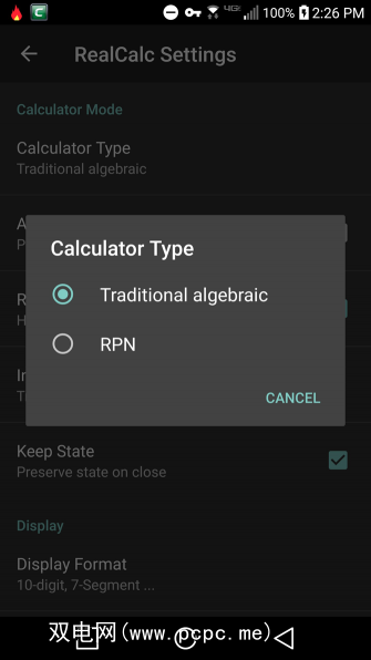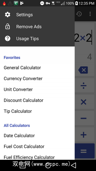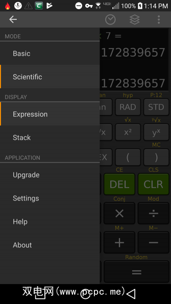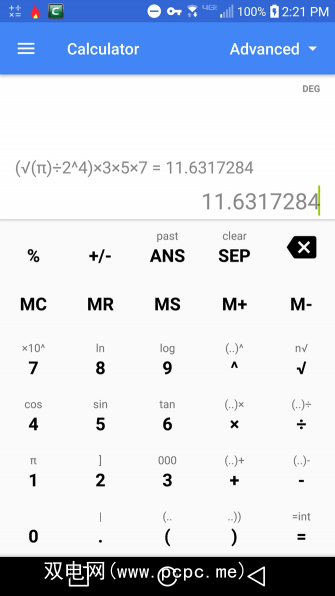 该应用程序提供两种计算器类型,传统和反向波兰表示法(RPN)。使用传统类型时,请确保在等式的各个部分加上括号以保留计算顺序。它与上面列出的其他计算器不同-您不能只按方程式显示它。