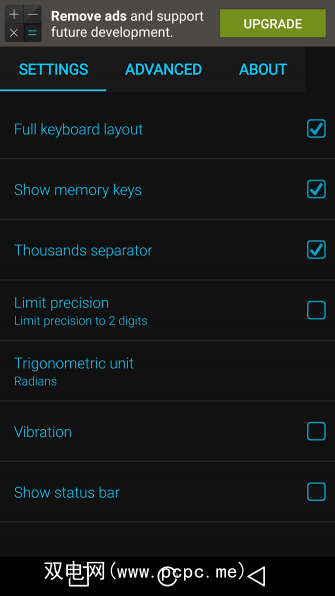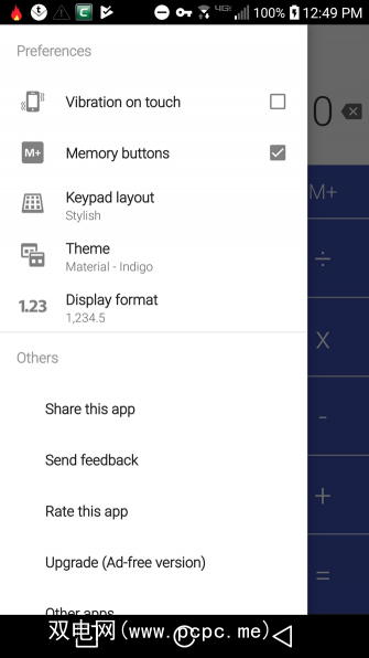 它还具有大量不同的颜色选项以及添加或删除内存按钮的选项。除此之外,您还可以更改小数的显示方式(1.5或1,5),并通过从顶部向下滑动来查看历史记录。它非常简单,而且比大多数基本的计算器应用程序更可自定义。